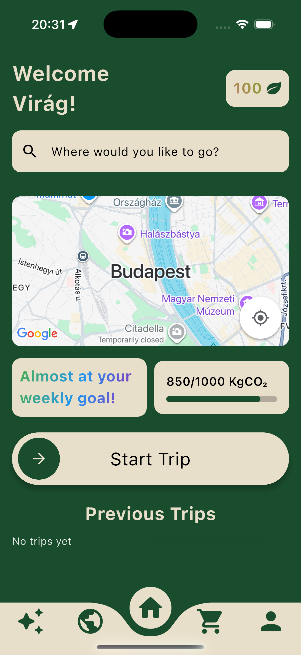 The more eco-friendly your transportation mode, the more leaves you earn per kilometer.